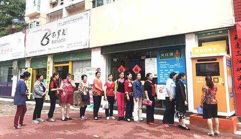社区居民排队购买现磨大米实景