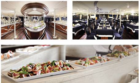 在船舱内,还有浪漫的现场表演,酒店式自助晚餐,更有韩、中、日式餐品可供选择。