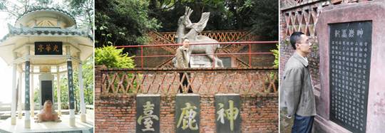 现存于白云山上的两处舜帝南巡遗迹,都蕴含着历史典故,著名学者吴承华在《白云山 ——一座不朽的文物山》中,就对那两处舜帝南巡遗迹作了详细的描述:“进了白云山,沿石阶上行几十米,再从小路拐入松林深处,便到了神鹿台。上面有一座双鹿雕像,细读镶嵌在砖壁上的《神鹿台记》碑刻,一个悲壮的千古传说令人感慨,我不禁向神鹿致敬。相传舜帝南巡时,有双鹿相伴左右,至苍梧之野舜帝不幸病故,‘万民大恸,双鹿尤为悲切,绕山疾驶,啾啾悲鸣,哀哀三日,声闻九天’,后来悲痛欲绝跳下白云山下的桂江逆流而上,‘途遇娥皇、女英二妃,跪报噩耗’,二妃听到噩耗悲恸万分、伤心的眼泪洒落在竹子上,竹子便挂上了她们斑斑点点的泪痕,成了斑竹,被称为湘妃竹,最后,二妃‘投湘水殉帝,双鹿随之’。二妃与舜帝的传说是中国历史上伟大的爱情故事,感动了历代诗人。屈原在《九歌》里,以二妃和舜帝塑造‘湘夫人’和‘湘君’的形象。在光华亭内,卧有一高达2米的碑石《舜帝南巡纪功碑》。碑之背面,为舜帝线条石刻像,仁厚睿智,凝重谦和。碑之正面,镌刻300余字的碑文,颂扬舜帝的德行品格人文风范,以及《史记》所载舜帝‘南巡狩,崩于苍梧之野。’的史实。光华亭的‘光华’两字,取自舜帝《卿云歌》中‘日月光华,旦复旦兮。’而‘光华”两字则让我联想到舜帝的名字:舜帝,姓姚,名舜,又名重华。‘光华’寓含把舜帝的高尚精神发扬光大之意。”吴承华也由此而将白云山誉为“梧州市的第一文物山”!