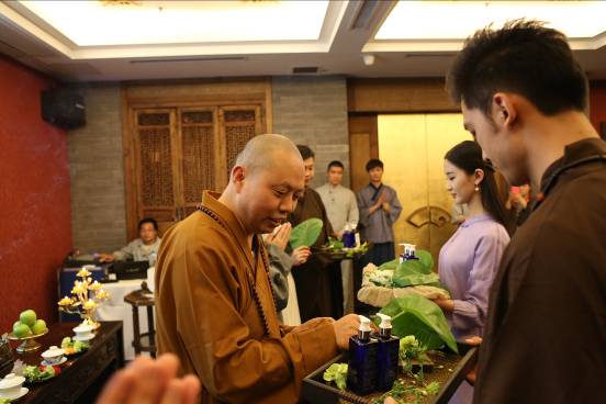 展示完“青莲·禅洗护系列”产品后,宗舜法师和延参法师现场更是以时尚幽默的语调配以睿智的禅理,在带给大家欢乐的同时也博得一阵阵热烈的掌声,最后大家一起吟唱《心经》,发布会在轻松愉快的氛围中圆满结束。