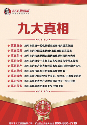 解永军:随着市场经济的发展,品牌对于一个企业来说越来越重要。作为施可丰人,对待品牌就像对待自己的生命一样去重视。再好的品牌也要靠产品和科研作为基础,这是我们一直努力的工作。其次在宣传推广方面,我们不断地进行深入的工作。我们深入农村、深入种田大户做科研服务和宣传推广;我们统一了样板店、专卖店,形成了在全国只要看到是施可丰的店就知道是施可丰真化肥的专卖店。