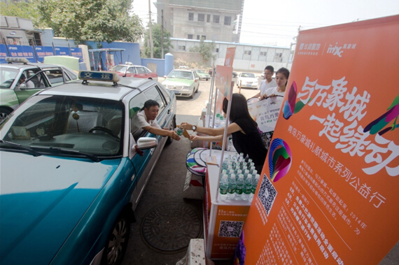 考虑出租车师傅们的便利性,青岛万象城特别将活动地点设在出租车比较集中的加气站,一个遮阳挡、几瓶怡宝水、一句“您辛苦了”的问候,免费送给前去加气的每辆出租车。7月16日,在辽阳西路加气站举行的首轮活动,青岛万象城已经为500辆出租车安装上了遮阳挡,送出1000多瓶怡宝水;7月23日,在位于银海大世界内的润昊加气站,为400多辆出租车安装了遮阳挡,送出800多瓶怡宝水。8月1日,在辽阳西路加气站,又为500多辆出租车送去遮阳挡和怡宝水。