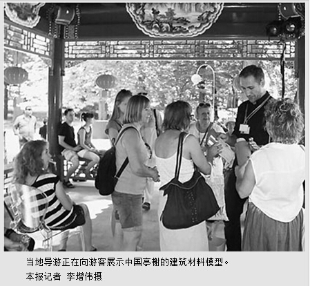 本报记者在现场看到,占地1.5公顷的“中国园”内挤满了热情的观众,人群里三层外三层,将位于“中国园”中心的六角亭和水榭围得水泄不通。在主办方和嘉宾简短讲话后,来自中国的艺术家开始了中国文化艺术表演。精彩的琵琶弹奏,婉约的花旦唱腔,柔美的青衣舞姿,萦绕在中国古典特色的亭台水榭间。几千名华沙居民和各地游客被中国文化深深吸引,人群中不时响起掌声和赞叹声。华沙的夏夜也仿佛陶醉在美妙的中国文化氛围中。