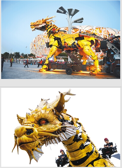 10月15日,为纪念中法建交50周年而设计的巨型机械“龙马”和“蜘蛛”亮相北京奥林匹克公园。这个47吨重的法国巨型机械装置将于17至19日在北京奥林匹克公园中心园区巡演。