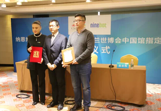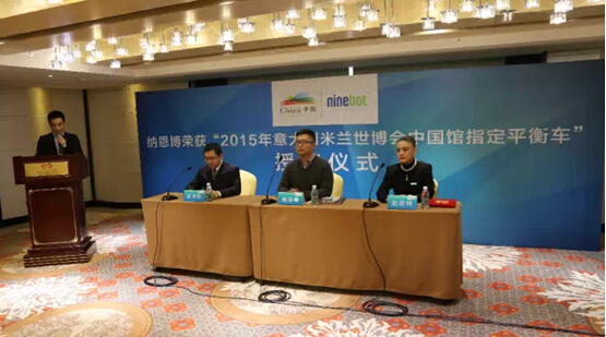 2015年2月3日,中国国际贸易促进委员会正式授予Ninebot平衡车系列产品为“2015年意大利米兰世博会中国馆指定平衡车”,同时授予纳恩博公司为“2015年意大利米兰世博会中国馆指定用品供应商”。宣告Ninebot作为中国平衡车产业唯一入驻品牌,向全世界展现中国智能短途交通行业的高速发展,为米兰世博会中国馆增添一道靓丽风景。