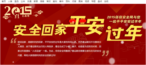 春节即将来临,为了您和家人平安度过一个欢乐、祥和的春节,作为国内首家专注百姓安全生活的大型门户类资讯网站佰佰安全网, 特意为春节期间可能遇到安全问题,如人身安全、饮食安全、居家安全、交通安全、公共安全等整理了一期春节安全特辑,供您参考: