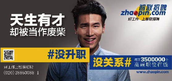 根据智联招聘调查显示,有超过半数以上的求职者会认为职场中存在不公平现象,这是导致与上级关系不融洽的主因。而智联招聘也针对此问题,炮制出了新一季“没关系”系列广告,将这些不公平问题明面化,揭露出了职场中阴暗面。在广告中,“天生有才,却被当作废柴”、“拼到吐血,却都没钱血拼”让众多求职者直呼“膝盖中箭”,单薄的薪水和渺茫的升职机会成为不少白领心中的痛。智联招聘在广告中的“没关系”让遭遇此类问题的白领也萌生了跳槽之心。