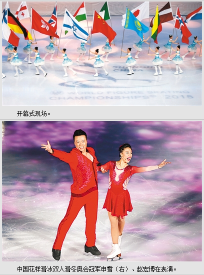 3月25日,2015年国际滑联世界花样滑冰锦标赛开幕式在上海东方体育中心“海上王冠”体育馆举行。