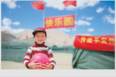 “4·25”强震过去一个月,灾区群众的日子正在走上正轨。在最大安置点——西藏日喀则桑珠孜区临时安置点内搭建的“快乐园”已成为灾区孩子们玩耍的乐园,孩子们可以在里面进行踢足球、打篮球等文体活动。图为5月24日,来自樟木镇的嘎玛次仁小朋友在“快乐园”里玩耍。