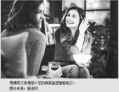 有公司打造最薄的电灯,也有公司不甘落后、立志要做出易携带又浪漫感十足的灯泡。美国某公司研制出的碗装灯泡就是这一理念的代表。它不仅可以放在手心随身携带,最重要的是,它完全不需要电缆,里面的电池充满后能够连续使用3小时。并且,灯泡的颜色可以通过移动软件来进行控制。即使手机没电了,也可以通过“碗”上的预设按钮来切换颜色。1600万个颜色选择、全智能化的亮度控制,再加上独一无二的可爱造型,定会让你和老友的约会时光变得浪漫又温馨。