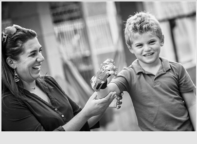 8月17日,法国东部伊泽尔省赛苏市的6岁男孩马克桑斯(右)展示自己的3D打印假手。