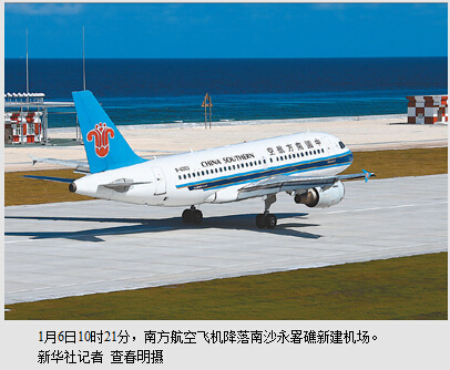 新华社海口1月6日电 (记者刘奕湛、赵颖全)2016年1月6日,中国政府征用的两架民航客机先后从海口美兰机场起飞,经过近2小时的飞行于10时21分、10时46分平稳降落南沙永暑礁新建机场并于当日下午返回海口,试飞成功。