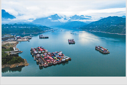 据长江三峡通航管理局消息,三峡船闸今年一季度货物通过量创历史同期新高。与去年同期相比,今年一季度通过旅客2.7万人次,增长127%;通过货物2626万吨,增长7.9%。图为4月6日,船舶停靠在三峡大坝上游秭归县沙湾锚地等待过闸。