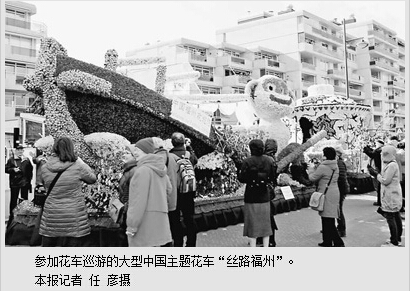“这是大型中国主题花车首次全程参与荷兰西部花车巡游活动。”中国驻荷兰使馆文化处主任杨晓龙告诉本报记者,这辆花车由中国驻荷兰使馆和福州市联合制作,取名“丝路福州”,用以展示中国海上丝绸之路的特色文化,描绘“一带一路”倡议造福中荷两国人民的美好前景。