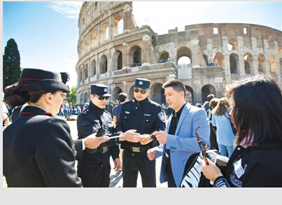 5月2日,中意首次联合警务巡逻在意大利罗马启动。即日起,4名中方警员将与意方警员在罗马和米兰两个城市开展为期两周的联合巡逻。期间,中方警员将协助意方警员处理与旅意中国游客安全有关的问题,保护海外中国游客利益,为游客与意警方沟通提供便利。这是中国警方首次与外国警方开展此类合作。