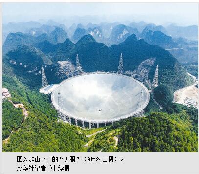 有着超级“天眼”之称的500米口径球面射电望远镜,9月25日在贵州省平塘县的喀斯特洼坑中落成,开始接收来自宇宙深处的电磁波,这标志着我国在科学前沿实现了重大原创突破。