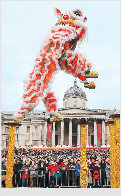 日前, 英国伦敦的特拉法加广场举行“文化中国·四海同春”文艺汇演,庆祝中国农历鸡年春节。