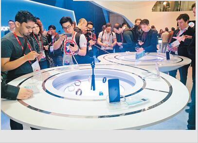 图为人们在中国手机品牌华为荣耀的展台参观体验。