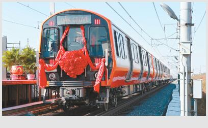 该车是国内首批具有完全自主知识产权的美标地铁车,在材料、空间等方面有诸多创新。图为美国波士顿橙线地铁车在长春下线。