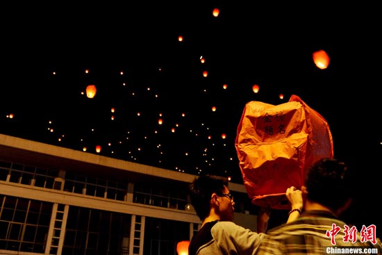 6月4日,赶考前夜,毛坦厂中学的学生们在孔明灯上写下心愿,向天空放飞希望,万只孔明灯映红了小镇上空。当日,安徽省六安市毛坦厂镇毛坦厂中学即将迎来2013年度高考。赶考前夜,万名高三学生与陪读家长在学校操场放飞孔明灯,预祝高考金榜提名。