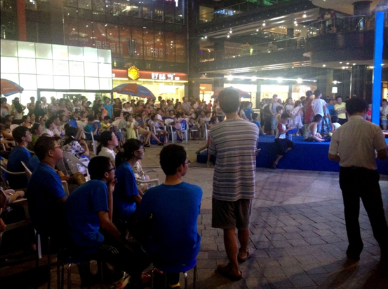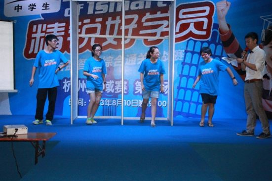 2013年夏天,最火热的暑期活动是什么?当属精锐教育与CCTV中学生频道联手打造的“全国益智类通关挑战赛”了,8月10日晚19:00,在星光大道广场举行了通关挑战赛杭州区域的第一场活动,共9组选手参与本场比赛,现场星光璀璨,学员斗志高昂,学员亲友团跃跃欲试,现场更是吸引了超过500人前来观战,每当场上选手有猜不出题目的时候,场下的观众完全抑制不住兴奋的心情,都想冲上台前与选手一决高下。