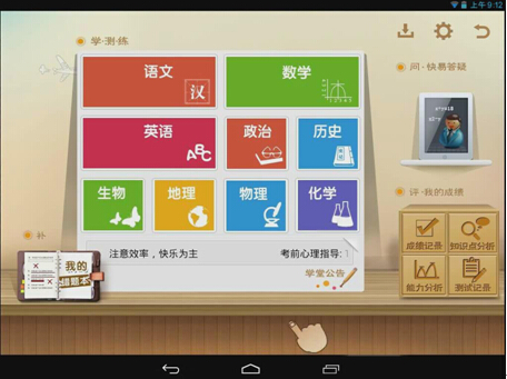 强大的数据搜集,有效针对学生们的薄弱知识制定学习方案。H18内置的快易学堂,通过同步本地教学学习资料,通过评测、统计、分析找到学习症结。针对性推送知识讲解、习题练习,快速修补学习短板。