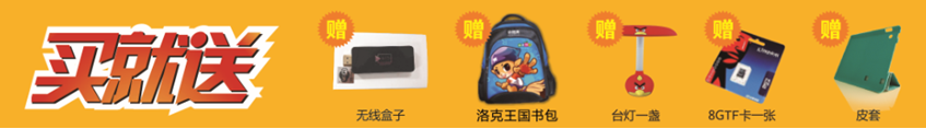 第三重实用礼:购指定机型可获赠书包、台灯、TF卡、无线盒子等实用礼品;