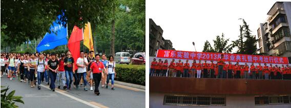 青枝绿叶何须辨,万卉丛中夺锦标“六月阳光璀璨,富乐花香满园”,又迎来了收获的时节。6月11日下午,绵阳市富乐实验中学2013级全体师生齐聚天健运动场,隆重举行了毕业典礼暨中考壮行仪式,为即将奔赴考场的初三学子壮行、助威。此时的运动场队列整齐,整装待发,声声激越的口号催人奋进,条条鲜红的标语震撼人心,气氛高昂而热烈。“展翅志高飞,常回家来看看;远航帆正举,惜离别太匆匆。”在即将离别之际,初三学生代表沈子越同学献上由衷的毕业感言,表达了对母校由衷的敬意。一句句真心的感悟表达对老师的理解、感激、怀念,一幕幕真情的回忆直戳现场学生泪点,许多同学听得泪光闪闪。“富乐三载,在母校的怀抱里,我懂得了珍惜,学会了坚强,收获了自信,它成就了我严谨、勤奋、科学、发展的人生观,我永远忘不了教我育我的那些严谨、慈爱的恩师……”