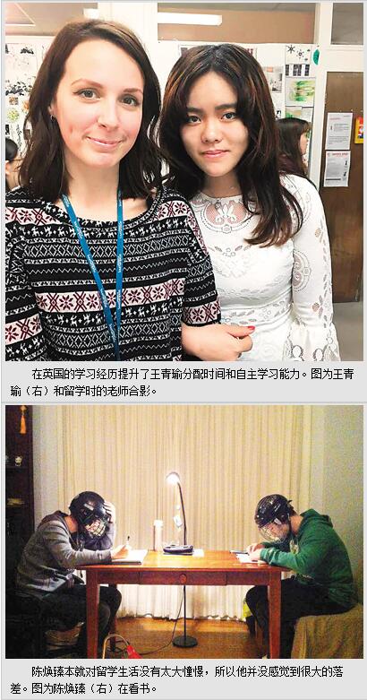 王青瑜毕业于英国南安普顿大学。她一直很向往去英国学习,觉得英国作为世界上教育水平较高的国家,拥有众多名牌院校,很适合留学深造。“留学前我曾以为学业会比较忙,留学后却发现,课程安排并没有那么紧凑,我还有空闲时间去各地旅行。而且这里自主学习的时间很多。我主修纺织设计,这个课程是一学期一个课题,课题没有任何限制。定题、调研、出稿、定稿都由学生自己搞定,老师只是每周指导一次。这非常考验和锻炼我自主解决问题的能力。”