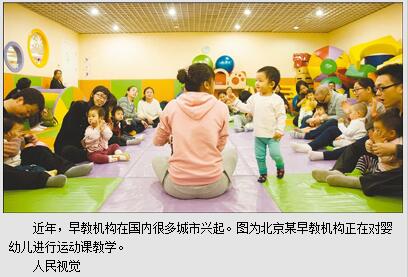 要训练出够资格的师资队伍。我国在北京、上海、南京等部分城市正开展0—3岁婴幼儿早教师资培训试点工作。殷飞建议从科学性与专业性着手:一方面,加强0—3岁婴幼儿早教的实验研究,按照地域区分、立项0—3岁婴幼儿早教的多种研究课题,让教育学术水平上一个层次,并出具有效的研究成果,在院校、培训机构开设课程,进行系统的学习,培养专业师资人员。另一方面,尽快出台《0—3岁婴幼儿早教指导意见》,明确孩子成长各阶段养育目标以及应注意的基本问题,使开办教育的机构在专业上有国家指导方略,帮助更多孩子健康发展。