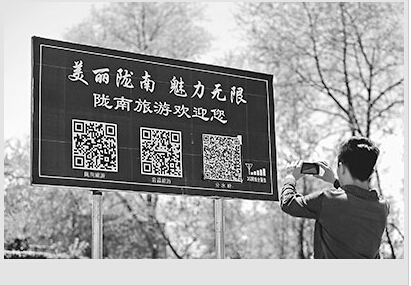 甘肃省陇南市在国道212线宕昌至武都段沿线13个旅游节点处设立陇南旅游二维码宣传营销系统,游客通过手机扫描,即可获取全面精准的旅游动态、景区点介绍、文字图片、视频解说及地理信息位置等相关资讯。