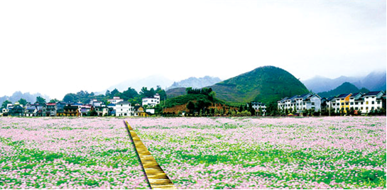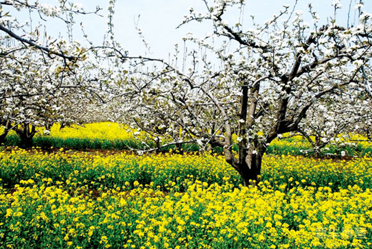 春天百亩梨花和油菜花竞相开放,形成交相辉应的秀美自然景观