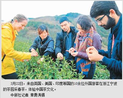 阳春三月,外国游客在浙江宁波的茶园体验茶文化,乘邮轮到海南三亚游览……今年初,中国多地的入境游继续保持增长。