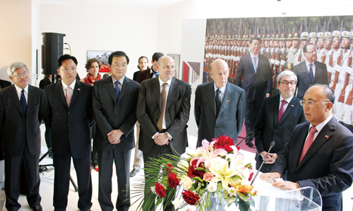 法国前总统德斯坦、总统外事顾问燕保罗、总统战略和亚洲事务顾问勒谢尔维、国民议会法中友好小组主席勒甘等法国政要和中国驻法国使馆临时代办邓励、武官处周琪将军、科技处韩军公参、巴黎中国文化中心主任殷福等使馆官员,以及数百余位中法各界嘉宾出席了隆重的开幕式。展览主办方、新华社中国影像传播公司总经理龙松林和法新社社长奥格共同出席展览。开幕式由新华社欧洲总分社社长王朝文主持。