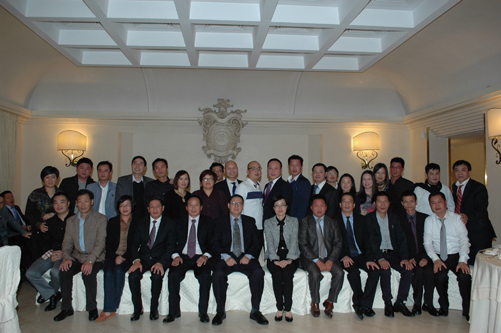 意大利南部文成同乡总会秘书长黄荣军主持招商会,会长董义深首先致辞,他介绍说:意大利南部文成同乡总会自成立以来,在驻意使馆的正确领导下,经过三届会长团的共同努力,各项会务工作都取得了长足的进步与发展。每当祖藉国遭受特大自然灾害的时候,我会积极响应使馆号召,及时同各兄弟侨团一起,为灾区人民送去物资与精神上的支援;而当意大利的文成籍侨胞碰到困难的时候,我们会长团成员总是第一时间赶去慰问,并帮助他们解决好各方面的困难。同时,我们对下一代华侨子女的中文教育非常重视,只有把我们的下一代培养好教育好,树立孩子们传承中华文化的信念,为促进与意大利人民友好交往打下坚实的基础,才能使我们具有五千年悠久历史的中国文化世世代代相传下去。