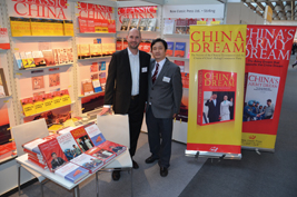英国新经典出版社社长黄永军在发言中提到:这次法兰克福书展,我带来了三本书:第一本,是〈中国梦〉——这是一本2010年1月在中国出版的书,该书第一版的封面上写着这样一句话:“这是一本美国总统奥巴马和国务卿希拉里不得不看的一本书。该书提出了四句话的中国梦大目标,就是“冲刺世界第一,决赛冠军国家,创造中国时代,建设无霸世界”。该书一出版就成为畅销中国的书,也成为一本在世界特别是在美国产生很大影响的书。如果大家到互联网上去搜索一下,会看到这本书在中国和世界、在汉语世界和英语世界的影响力。美国大战略家基辛格在2011年5月出版的〈论中国〉一书中,用大篇幅点评〈中国梦〉。