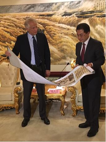 May 16, 2017, after attending The Belt and Road Forum for International Cooperation in Beijing, De Villepin and his party came to Henan Province to study the relative projects of Belt and Road, and met the Henan Provincial Standing Committee, Executive Vice Governor WengJieming'sin Zhengzhou.