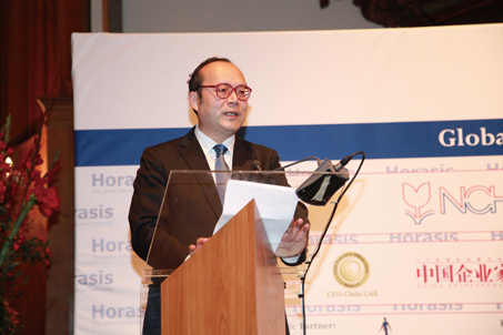 图片001-图为出席达沃斯环球中国商务论坛的中国驻荷兰大使陈旭在开幕式上致辞。(张亮摄影)