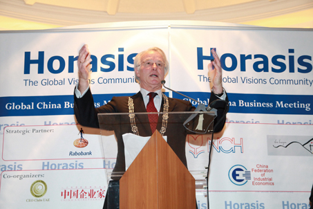 出席开幕式酒会的海牙市长JoziasvanAartsen先生表示,正逢马克·吕特即将访华之际,第九届Horasis环球中国经济论坛在海牙隆重举行。海牙这个有着百年华人奋斗历史的城市,今天又迎来中国工商企业界人士,他希望中荷两国各界人士能够再次携手合作,帮助中国在世界经济中崛起。同时,也使海牙这个国际大都市--联合国机构所在地,变得更加辉煌美丽,成为世界人民的家。