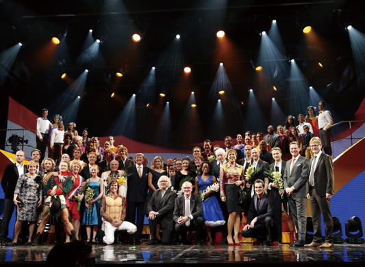 图片001-图为荷兰国王威廉-亚历山大与王后马克西玛在欢庆演出后与演员们合影留念-图片来源荷兰电视广播公司