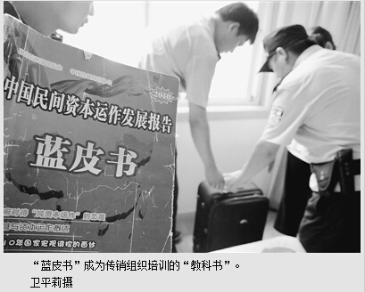 同时,记者了解到,现在传销组织内部架构严密、分工明确,甚至有专业的财务、培训软件,还有专门编撰印刷的虚假文件。传销组织在拉新人“入行”时,还都专门有如何应对公安、工商检查的培训;传销活动大多化整为零、灵活机动,集中活动时还有人“站岗放哨”;一些传销组织高级头目异地指挥甚至境外遥控。