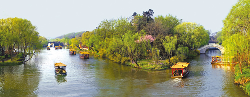 时至今日,泛舟湖上,赏不尽湖光山色,听不完琴箫莺歌,美不够衣香人影。十里湖光,清澄缥碧;花木扶疏,连绵滴翠;亭台楼榭,错落有致;人文景观,独具风韵。瘦西湖正向八方游客敞开怀抱,热情欢迎远道而来的佳宾高朋。