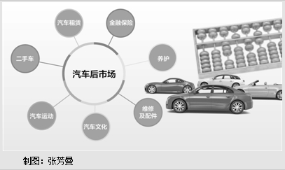 统计显示,截至2014年底,全国机动车保有量达2.64亿辆,其中家用汽车1.3亿辆。业内保守估计,包含金融、保险、养护、维修及配件、汽车文化、汽车运动、二手车、汽车租赁行业的国内汽车后市场年营收规模已达6000亿元,今年将达到7000亿元。