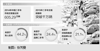 中国汽车流通协会的统计显示,2014年中国二手车市场交易量达到605.29万辆,相比上年同期增长16.33%;交易额3675.65亿元,同比上涨26.03%。