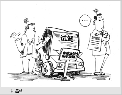 对于试驾,要具体分析。“4S店陪同人员和驾校的教练是两个概念。驾校的学员出了事故,教练负有责任。而在试驾时,试驾者肯定是有驾照的,那么作为驾驶人,应当根据过错情况,承担交通事故中的相应责任。”史学科说,至于责任如何划分,不是按《试乘试驾协议》规定的那样由消费者承担全部责任,而是依据道路交通安全法等,由交警认定。