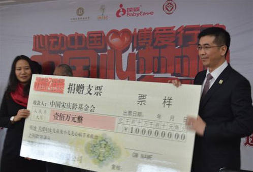2014年3月22日,“儿童希望葆婴天使救助计划”--葆婴小儿复杂先心病救助活动在河南南阳启动。葆婴投入100万元对河南省贫困地区患有复杂先天性心脏病的贫困患儿进行筛查和救治,及时提供医疗绿色通道的支持和医疗资金的帮助。让困境孩子尽早摆脱困境,恢复健康。本次公益活动由中国宋庆龄基金会携手国际心胸专家俱乐部,与首都医科大学附属北京安贞医院、上海远大心胸医院、南阳市中心医院共同支持开展,是国内第一家以救治全国1000万贫困心胸重症病患为目的而建立的全透明化公益互助平台。