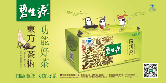 碧生源控股有限公司为中国保健功能茶产品的领先企业。碧生源秉承中华五千年的健康茶饮文化,结合中医传统中草药的天然功能,依据药食同源的理念,成功开发了一系列具有保健功能的东方茶产品。主力产品碧生源牌常润茶和碧生源牌减肥茶经过14年的经营,已被国人耳熟能详,伴随着人们走过了整整一个时代。中国保健协会连续三届评定碧生源品牌为中国“十大最具公信力保健品品牌”。依据对全国29个城市4000多家OTC药店的市场普查:碧生源常润茶及碧生源减肥茶,自2010年连续四年分别位居润肠通便品类及减肥品类的领导地位。