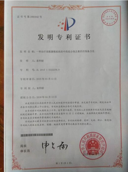 天地同体,万物有联。掌握了因果规律,五行生克制化规律,阴阳平衡规律,我们才能利用自然,滋养生命,利用药物,救治生命。人生疾病,中医认为是阴阳不合所致,某些疾病之所以很难治愈,是因为人们没有找到合适的方法,没有找到药物达到阴阳平衡的调理方法。例如,针对劲椎病、腰间盘突出症、骨质增生疾病,袁和耐和他的科研团队根据古训:“病集于全身以口服为上,病集于一处以贴敷为上”的理论,在茫茫中草药、动物、万年化石及矿石王国里苦苦搜寻,能够找到克治病毒的药物,运用现代科学技术手段进行实验,终于探索出包括中草药大家族中的新成员,总结出安全高效不痛苦、能治愈颈椎病、腰间盘突出、骨质增生的新方法一一纯中药制剂“和垚牌五星药膏”外敷贴,经过临床验证及数以万计的病人见效案例,该研发成果已获得国家知识产权局颁发的《发明专利》证书,弥补了世界医学空白,为中国中医药走向世界,为世界的医药科技进步做出了重要贡献! (黄迅)