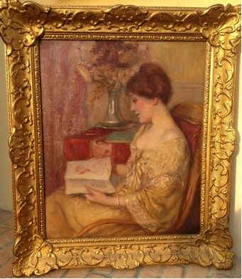 Charles VASNIER(查尔斯·瓦斯涅尔1873-1961)在20世纪上半叶创作了一幅盛有名气的作品《阅读》。在这幅典型的浪漫主义画卷中,查尔斯呈现了一位年轻优雅的女子坐在走廊角落的椅子上沉浸于阅读的场景。整个画面色彩柔和,画中人低头俯视书本,这使整个人物肖像产生动态的变化,查尔斯用心刻画人物的表情与姿态,画中的女人充满青高贵的气质和优雅的身姿,隐含着欧洲早期知识女性的魅力,她没有宫廷贵妇的娇媚和矜持,更没有珠光宝气,在朴实无华中表现出查尔斯的审美理想和画中人的精神气质。整幅画除了肖像人物,还有对墙面、插着花的花瓶、桌布和椅子的描绘,但是查尔斯·瓦斯涅尔没有仅仅着重于这些周围环境的描绘,而是通过对周围环境的描绘在画布上略微表现出妙龄女子的特点和社会地位。