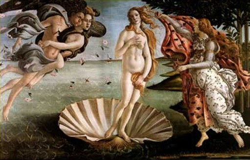 《维纳斯的诞生》画面内容取材于这样一个希腊神话:有个叫库娄诺斯的人,他斩下父亲身体的一段抛进海里,长期漂流,结果变成一个比雪还白的水泡。等水泡一开,在中间生出一位亭亭玉立、如花似玉的少女。这位少女被风神塞浦路斯用微风送到米洛斯岛,在那里由季节女神赫拉给她披上美丽的衣服,她也成为女神。古代希腊人想象中的维纳斯,是成人般地从海中诞生的,即生下来就是个少女。画家波提切利按照古典雕像的样式来描绘维纳斯,画面色调极其明朗和谐,描绘的人物秀美清淡,具有神秘美感。